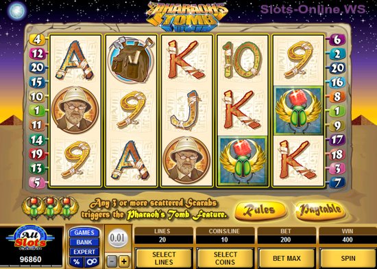 Try playing this bonus feature slot machine game yourself - the mysteries of the long dead past can be spun at Pharaohs Tomb video slot.