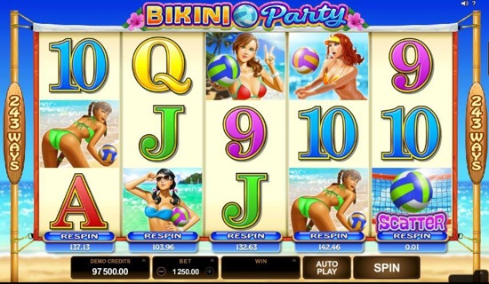 Play Bikini Party video slot game at the following recommended Microgaming online casinos (see current promotions):
