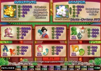The other winning symbols on the reels are Chinese Symbols, Chinese Geisha, green jade idols, priceless blue and gold vases, and traditional Ace to 9 card symbols. Players can choose coin denominations from $0.01 up to $5.00 and bet up to $125 per each spin (25 lines).