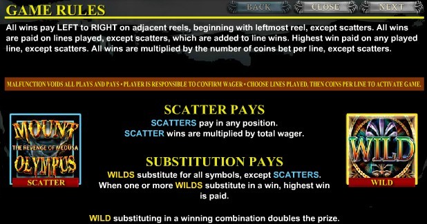 Mount Olympus - Payout Table and Rules, Screenshots (click to enlarge):