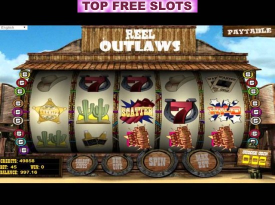 You may find free fruit machine games fun to play, but winning some cash is more exciting. Reel Outlaws is a 5 reel, 9-payline video slot with a wide range of bets for you to choose from (0.05, 0.10, 0.25, 0.50, 1.00, 5.00). The maximum amount of chips you can bet is 45, or 5 per line, but the number of lines to play is also up to you. The maximum jackpot win is $10,000. This wheel of fortune also has a bonus feature. Win extra bonus credits when you spin 3 or more Reel Outlaw logos and get a chance to shoot the whiskey bottles in the Bonus Game.
