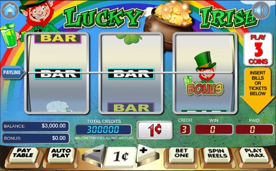 Lucky Irish is a single payline, 3 reel slot machine game that includes a wild pot of gold that completes any winning combination PLUS a Bonus Leprechaun who guarantees a win!