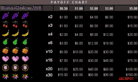 The symbols on the reels of Megaspin are fruit styled gems. You can select coins from $0.50 up to $5.00 maximum bet per spin. Highest win (other then progressive jackpot) is 900x total bet (30 on main reels x 30 on mega reels).